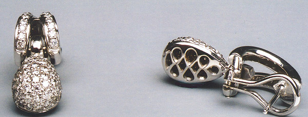 18-Karat White Gold with Pave'd Diamonds, dangle Ear-Clips. Total weight of 2.27 carats and average color and clarity grade of "G-H and VS2". $5.520.00