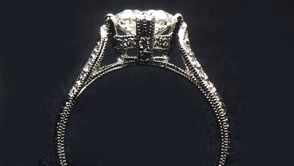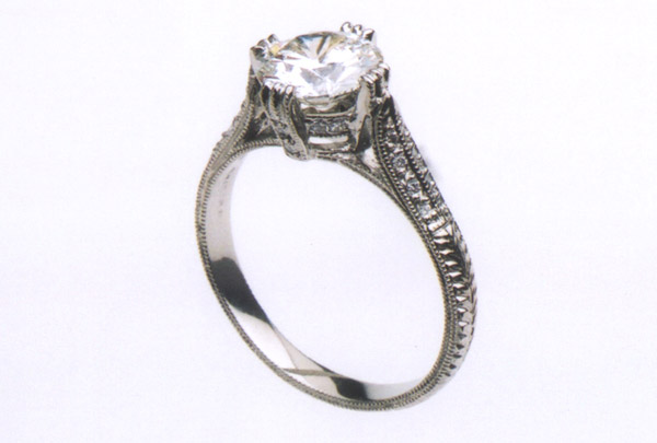 Lady's Platinum Filigree style ring. Central 1.31 carats round Brilliant Cut Diamond. Accompanied with "EGL" Certificate. With color and clarity grade of "H & VS2" it is premium cut and portion. $10,821.00
